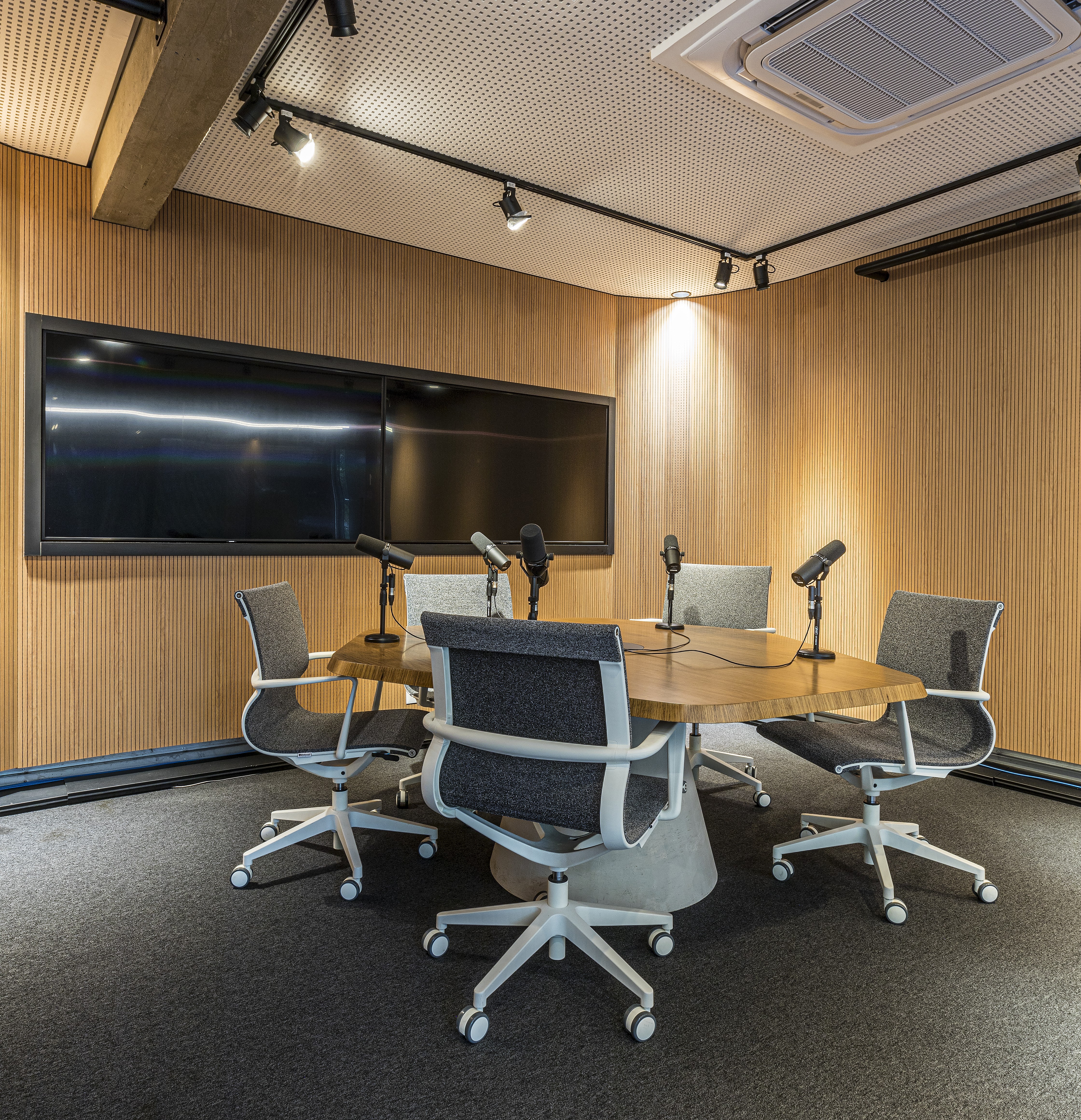 Background com 2 TVs 55" e cortinas de isolamento